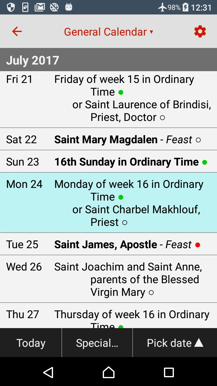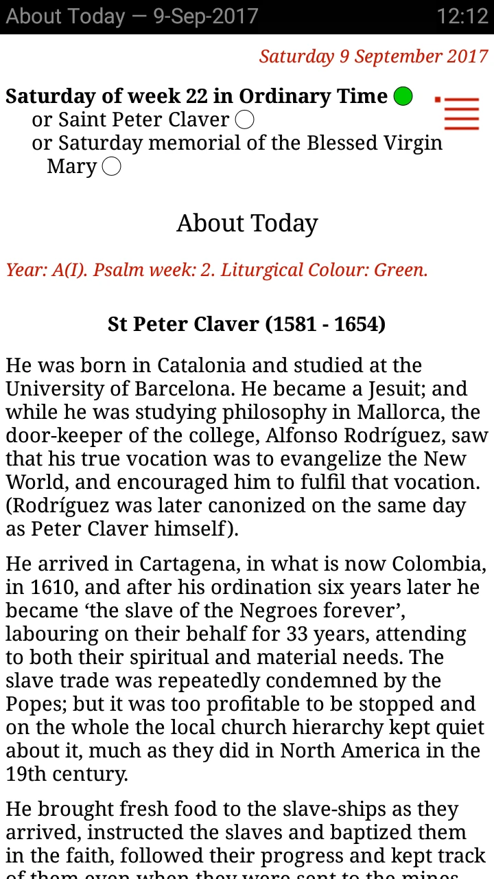- Extremely comprehensive liturgical calendar covering all universalis feast days and readings