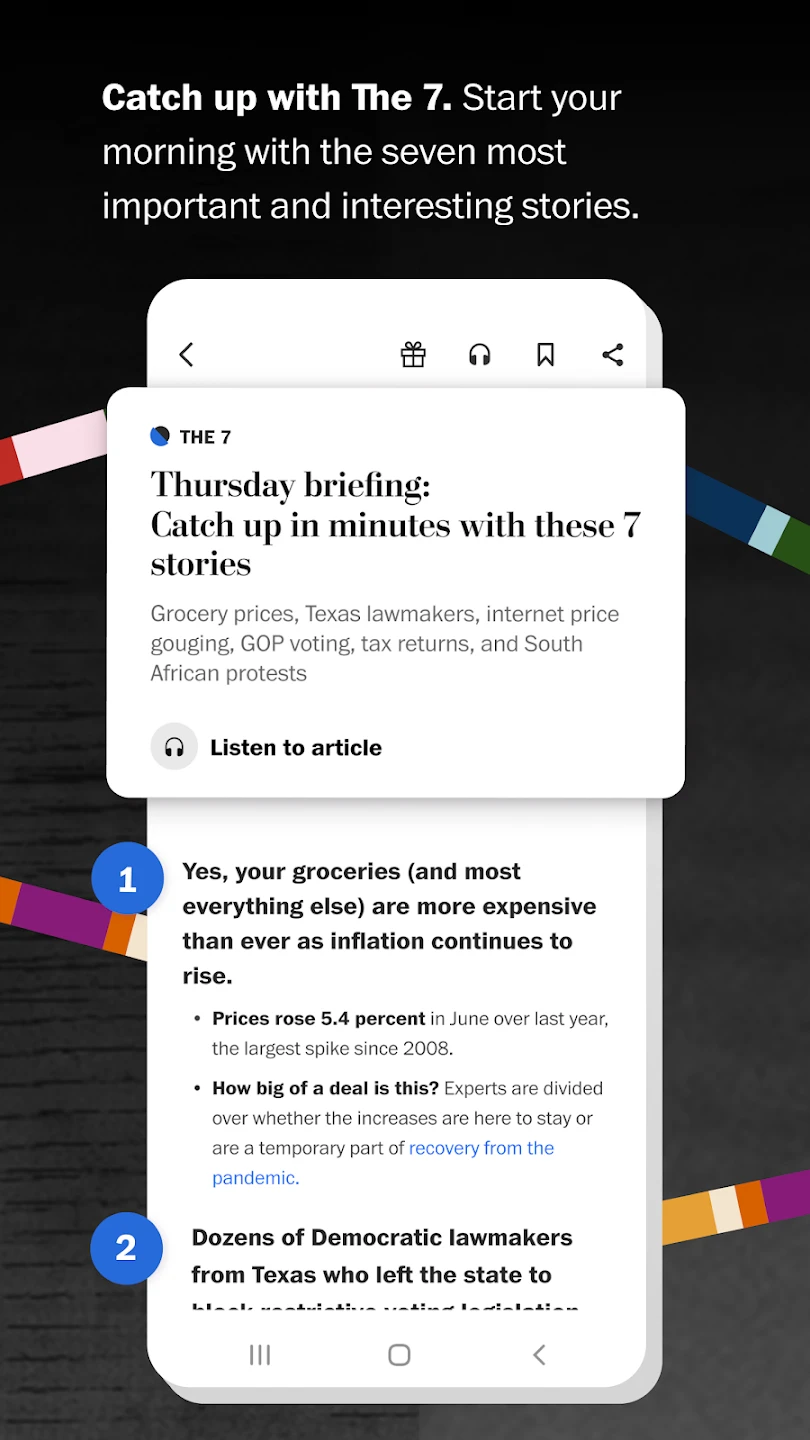 • Podcast Integration: Seamlessly stream Washington Post podcasts directly within the app while multitasking. This feature enhances media consumption by integrating audio content with visual storytelling, making it ideal for listening during commutes or work sessions while still seeing show notes and related articles.