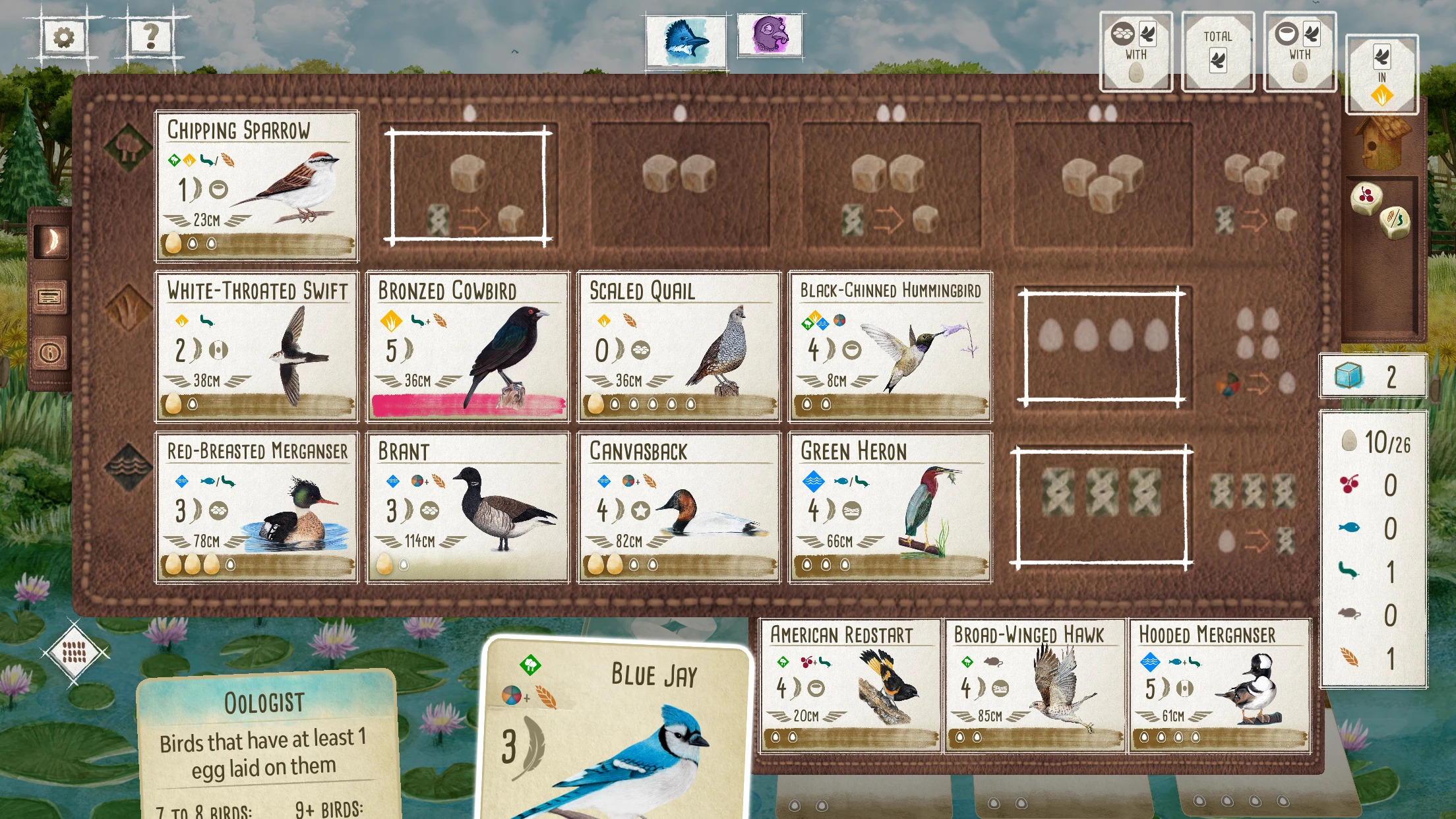 • Balance bird draws – some birds are more powerful but harder to play, while others fill hands easily. Match your playstyle.