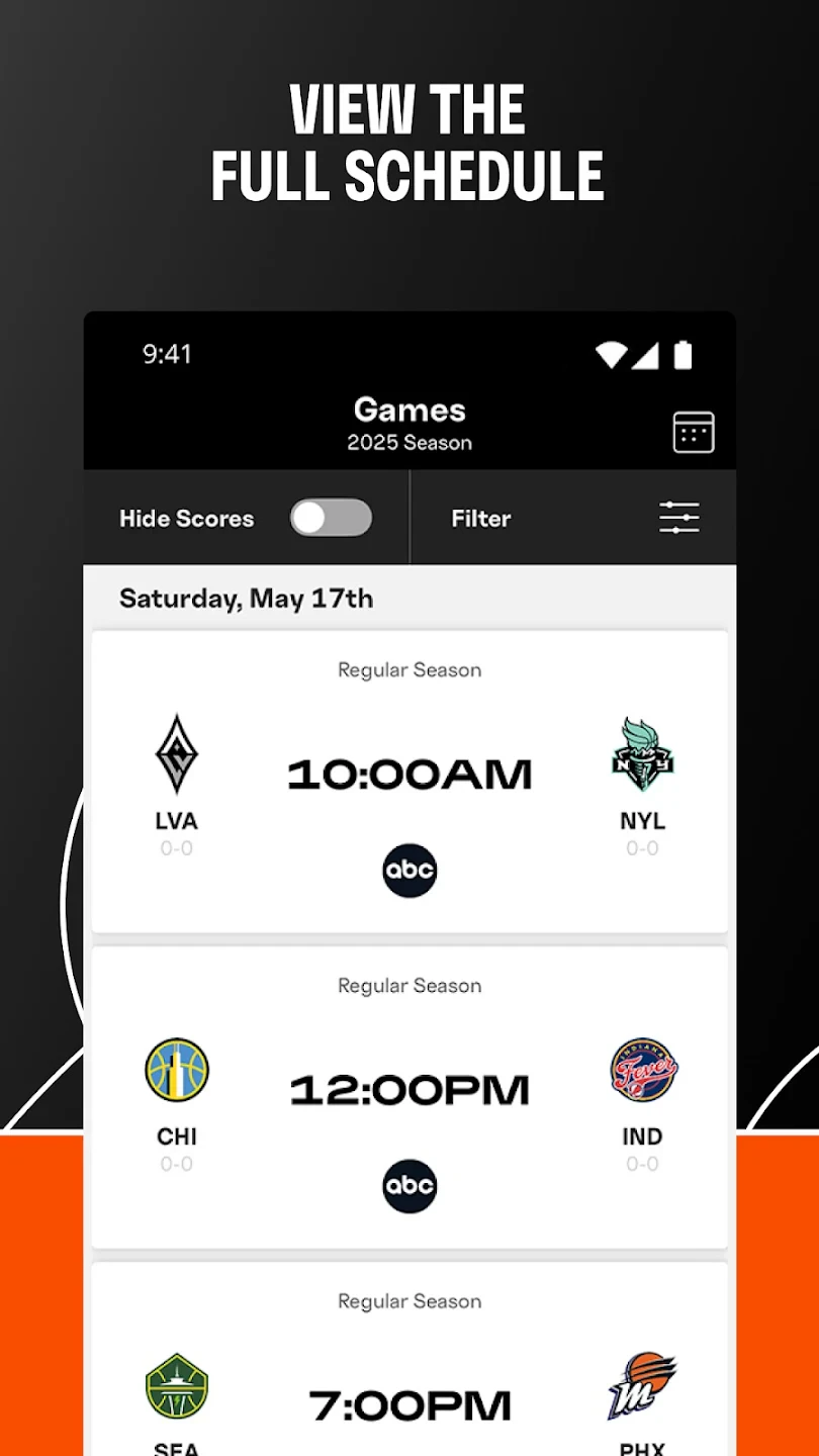 • WNBA Schedule & Calendar Integration: Seamlessly view upcoming fixtures, date/time details, venue locations, and streaming availability. This centralized hub saves time by consolidating all league information in one accessible interface.